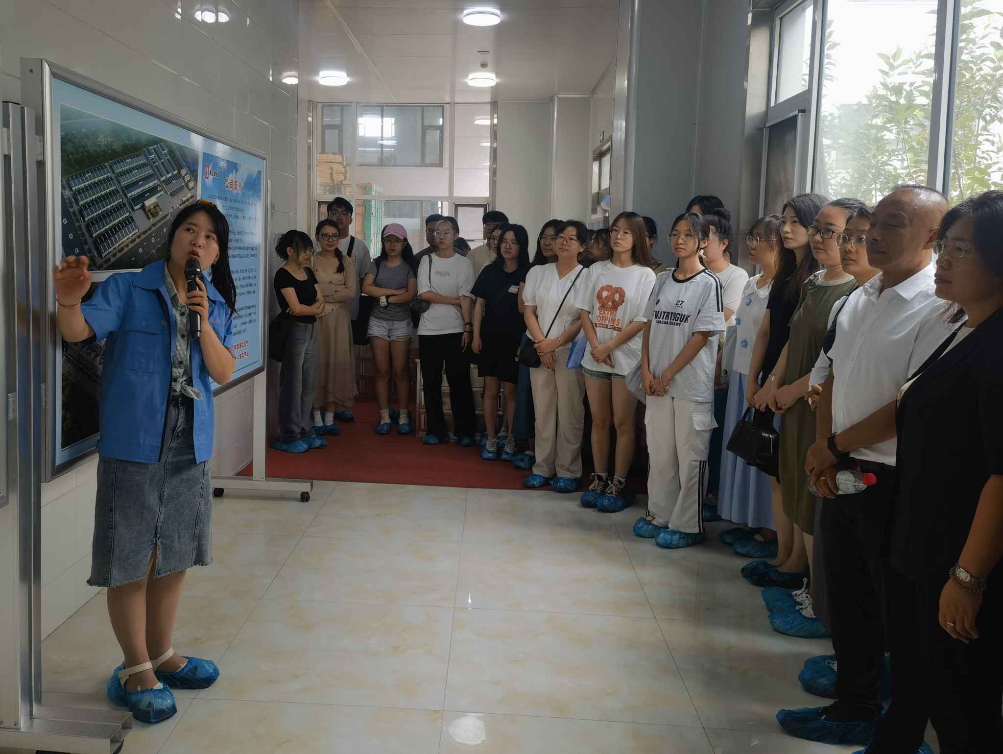 活动开始,在王晓的引导和介绍下,实地参观了海玉园公司的标准化生产车间、原料库房、成品库房以及成品展示厅,让师生们熟悉了产品生产全流程。