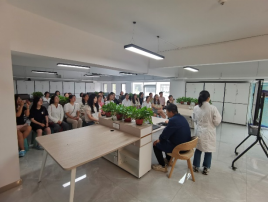 师生们先来到了公司的创新研究院,由董事长助理郭旭超带领参观了公司创新展区,他详细讲解了公司的发展历程、东京热、科研成果以及未来发展规划。随后科研部部长董志帅及其同事分别介绍了公司主要科研成果以及员工们的工作生活日常。之后,郭总带领师生们参观了创新实验室。