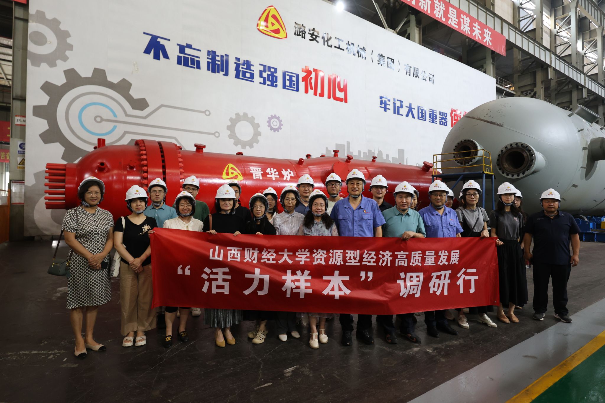 联合会计学院师生一行23人赴潞安化工机械(集团)有限公司进行调研。党委书记、董事长任金锁,党委副书记、副董事长王建斌,副总经理任远热情接待了调研团队。